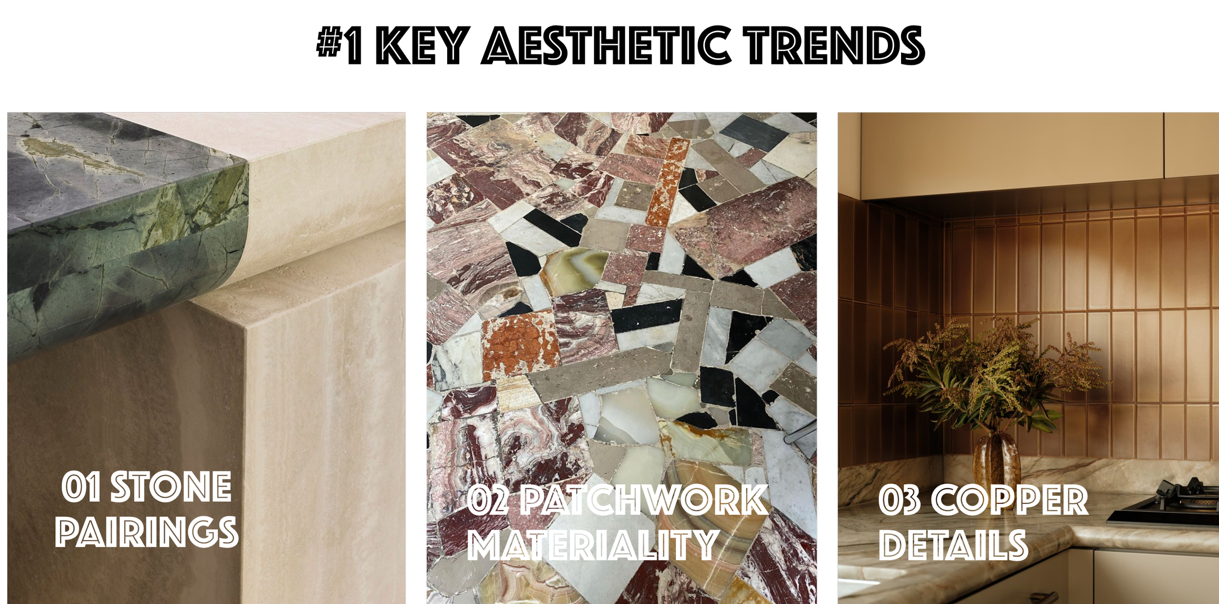 one of the strongest interior trends for 2026 is the use of stone in dialogue. two different stones are combined within one space, allowing contrast to create depth without visual noise. think subtle transitions rather than sharp statements.